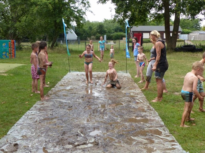 * Glijden in de modder. Wanneer je een glijbaan hebt kun je een zeil onder de glijbaan leggen. Kinderen kunnen dan van de glijbaan zo in de modder glijden. Blijf hier wel bij om ongelukken te voorkomen.
