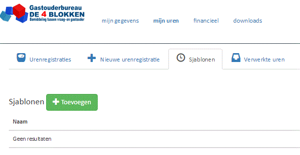 Wanneer u als gastouder een kind op vaste dagen verzorgt, kan de gastouder zelf voor dat kind een sjabloon aanmaken, waarin u de vaste opvangdagen invult. Als u dan een nieuwe urenregistratie heeft aangemaakt, kunt u aan de linkerkant het sjabloon selecteren. De uren uit het sjabloon worden dan automatisch ingevuld. Hierna kunnen de uren nog worden aangepast. U vindt de optie om sjablonen toe te voegen onder “Mijn Uren”.
